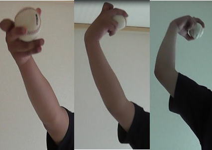 縦のカーブに近い腕の振りで投げます。